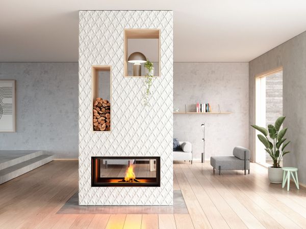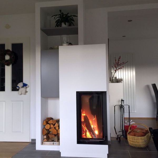 Die Kaminverkleidung aus Wärmebeton kann nachträglich gespachtelt oder mit einer wasserbasierenden Silikatfarbe im Lieblingston gestrichen werden. So lässt sich auch ein Elementkamin von Nordpeis, Brunner, oder Spartherm ganz individuell gestalten. Ob als Tunnel-, Front-, Panorama- oder Eckgerät passt sich der Elementkamin jeder Aufstellsituation an.