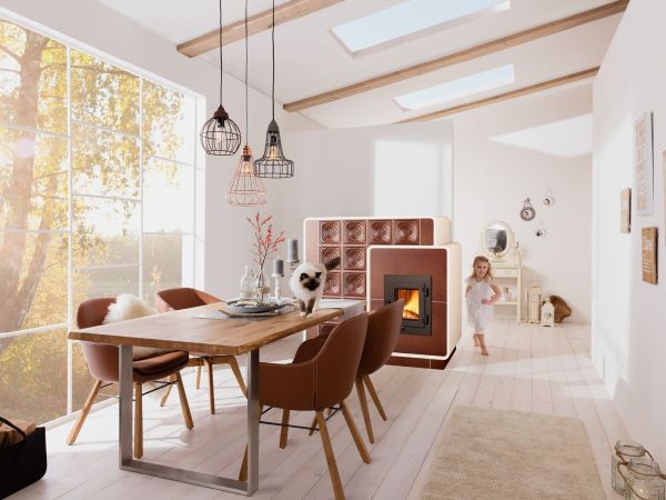 Der Kachelofen ist die perfekte Lösung für Niedrigenergiehäuser. Er gibt über viele Stunden milde und angenehme Strahlungswärme ab. Diese besitzt die gleiche Wellenlänge wie Sonnenstrahlen und wirkt deshalb besonders wohltuend. Rund 20 Prozent der Wärme werden über die Glasscheibe direkt in den Aufstellraum abgegeben; 80 Prozent kommen zeitversetzt über viele Stunden aus der Speichermasse. Das macht den Kachelofen seit Jahrhunderten so beliebt.